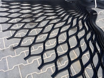 Geosiatka dostarczana jest złożona (po rozłożeniu wygląda jak plaster miodu)